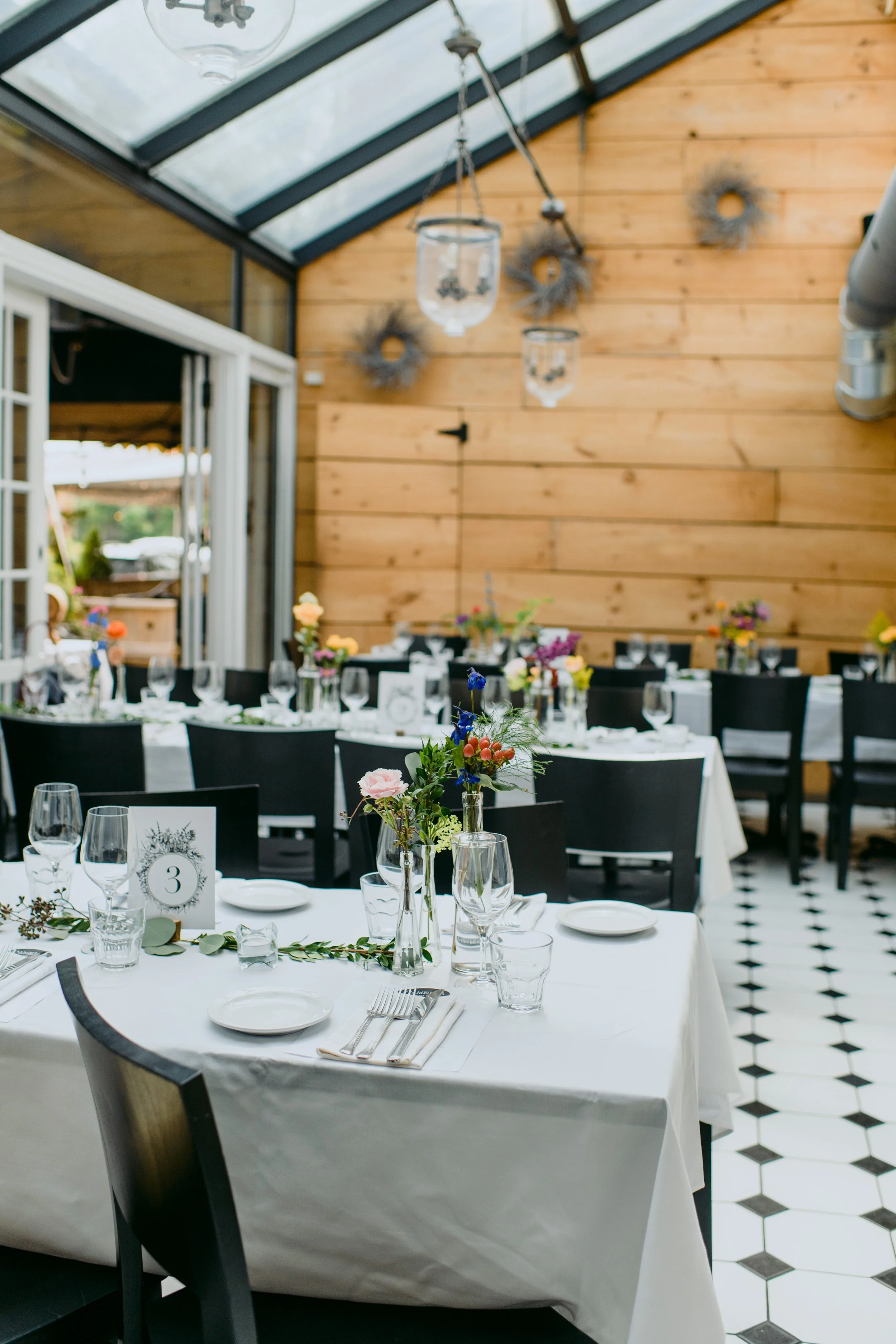 a beautiful small space at the back of cluny bistro with outdoor access within the distillery district — especially great for a brunch/lunch wedding.