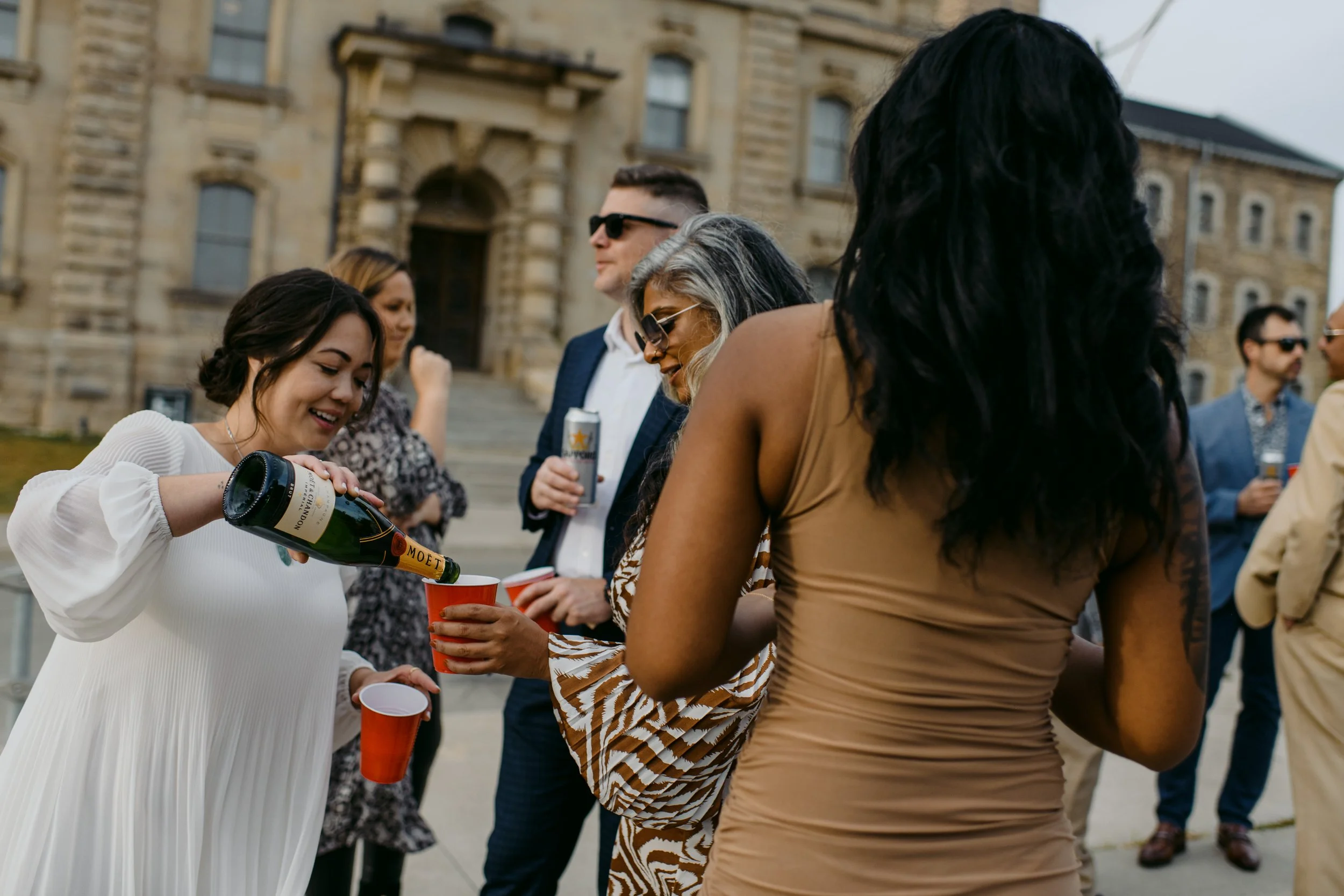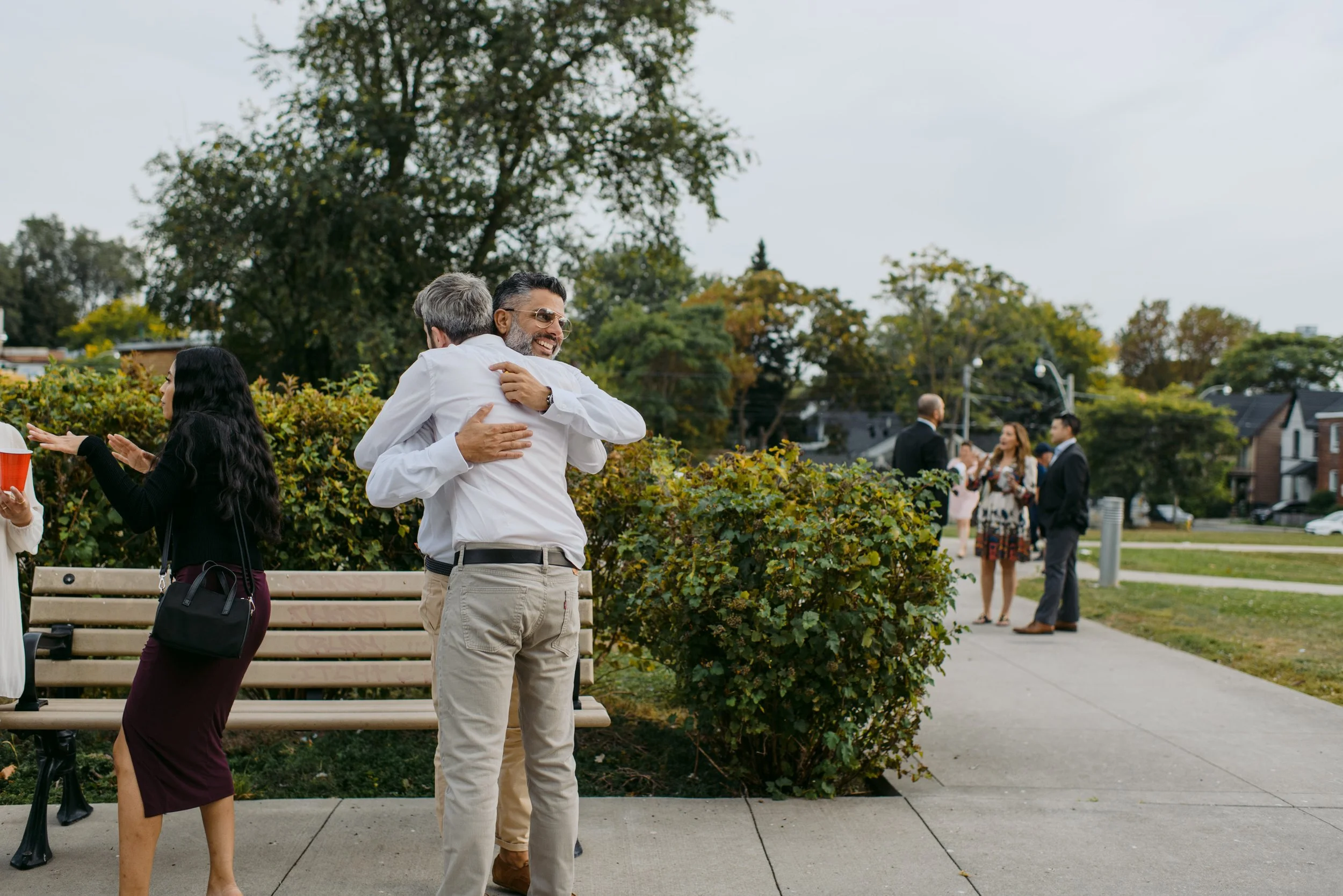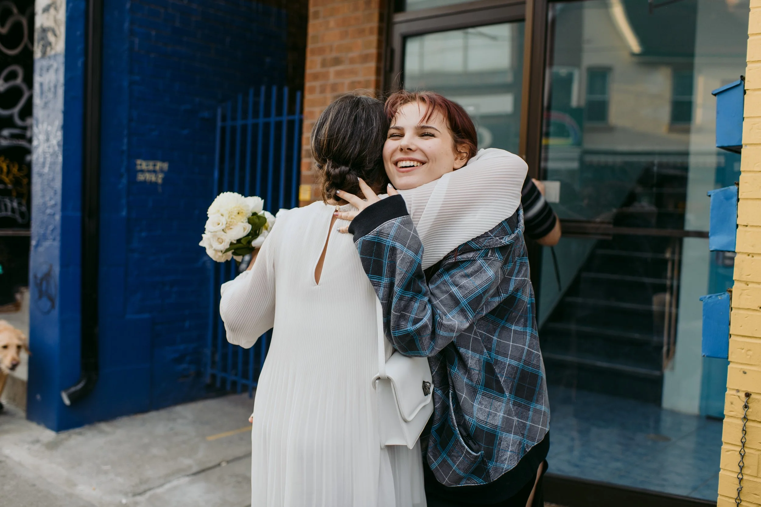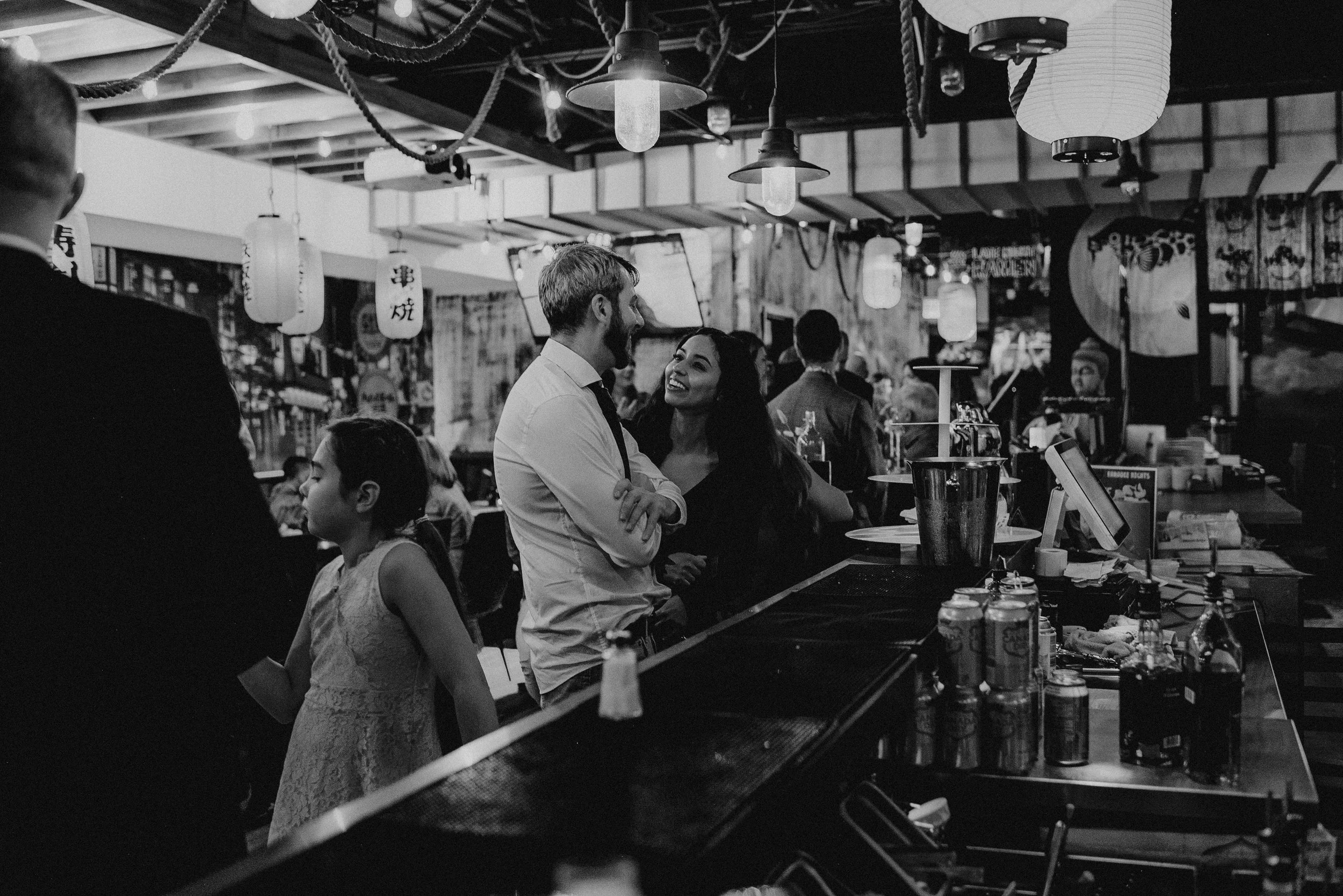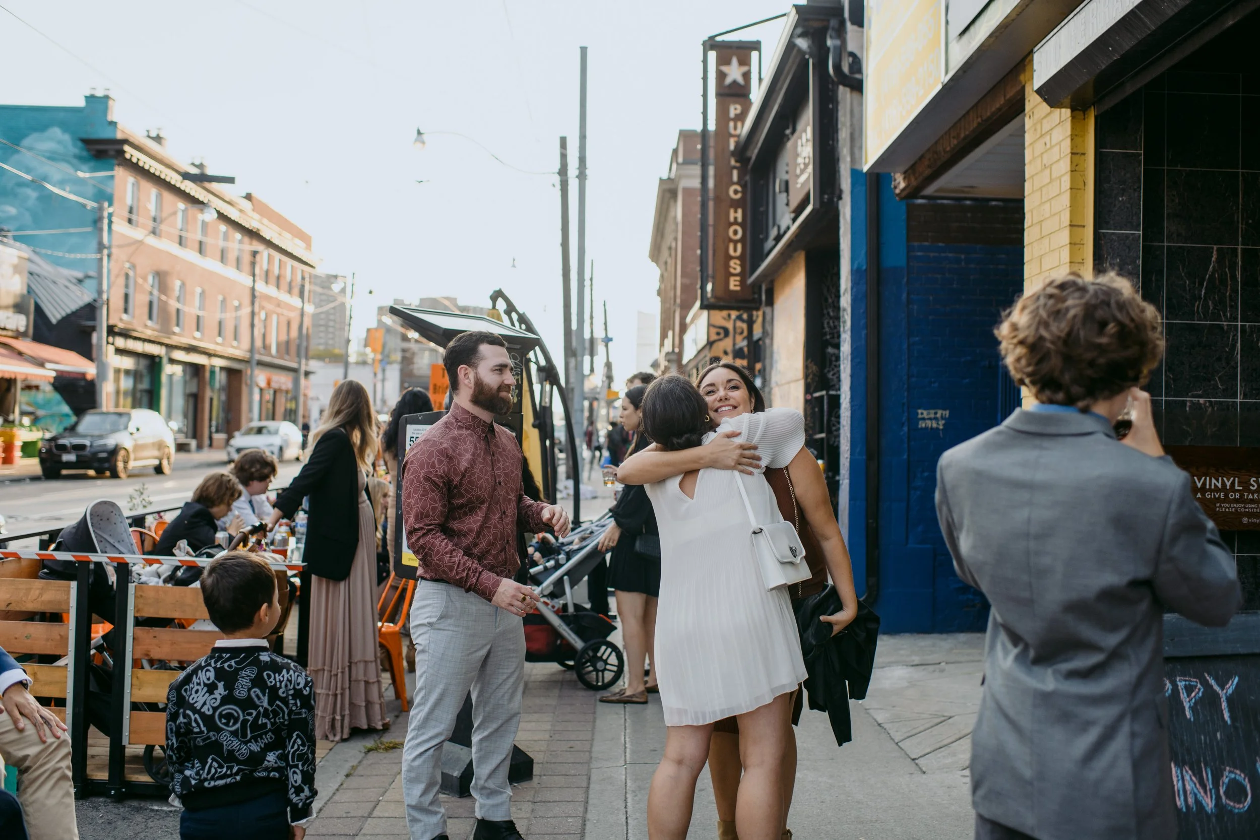 erica and geoff did a city hall wedding during the pandemic but realized they actually did want to celebrate too — nothing big or elaborate, just have an afternoon and evening with a small group of their family and friends. through a mutual friend they found me, and i am so glad i didn’t miss this. i’ve seen a lot over my past decade plus as a wedding photographer, but i am far from having seen it all, and this day was so out of the ordinary in the best way. they had a ceremony in the neighbourhood where they had lived for years in toronto, then we all walked over to a nearby park and patio until the karaoke bar (dine and dim) opened on gerrard st east. as a documentary photographer, i feel like i thrive in this kind of expansiveness of time and space, and it was clear from everyone’s faces that there was nowhere else anyone would’ve rather been. truly lovely to have documented this day.